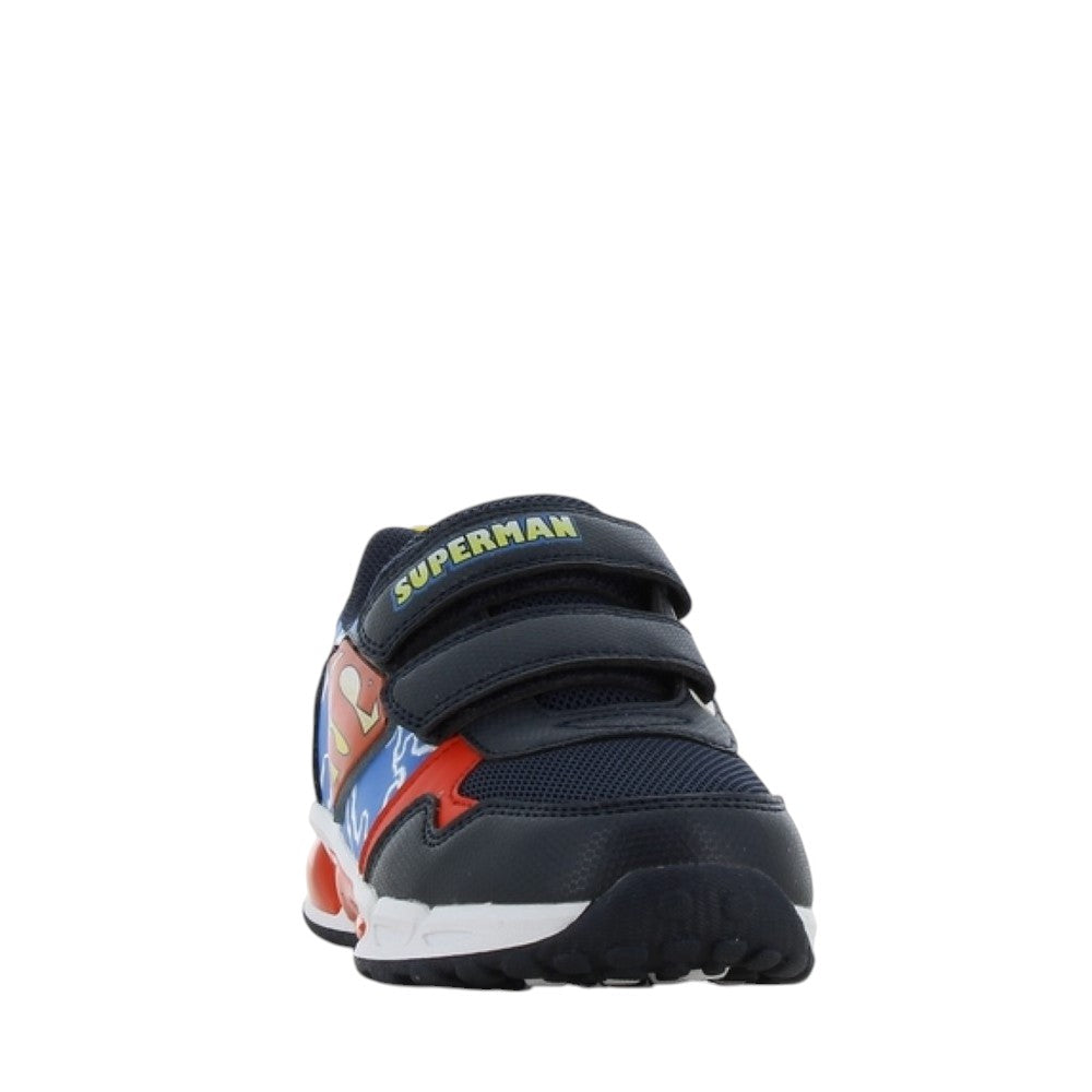 SUPERMAN Αθλητικό με φωτάκι Led και ρυθμιζόμενο αυτοκόλλητο για την καλύτερη εφαρμογή στο κάθε ποδαράκι. Με τεχνολογία Flex & Lightweight σόλα, αντιολισθητική και σταθερή για μεγαλύτερη ασφάλεια. Ανατομικός και αντιβακτηριδιακός πάτος για την σημαντική υγιεινή του ποδιού. Εσωτερικό υλικό ύφασμα για να αναπνέει το ποδαράκι.